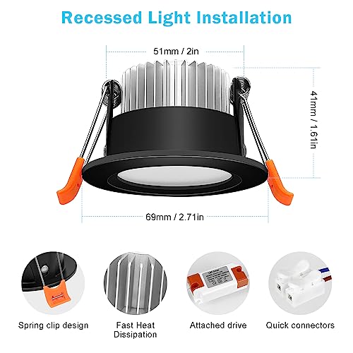 Specification: 2 Inch Smart Recessed Lighting, 6 Pack WiFi Black LED Downlight 5W 120V, Dimmable RGBCW 2700-6500K Color Changing, Compatible with Alexa/Google, Ceiling Lights with LED Driver