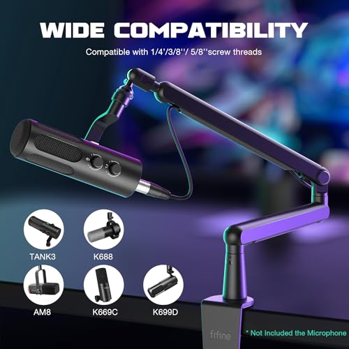 Specification: FIFINE Microphone Boom Arm, Low Profile Adjustable Stick Microphone Arm Stand with Desk Mount Clamp, Screw Adapter, Cable Management, for Podcast Streaming Gaming Studio-BM88