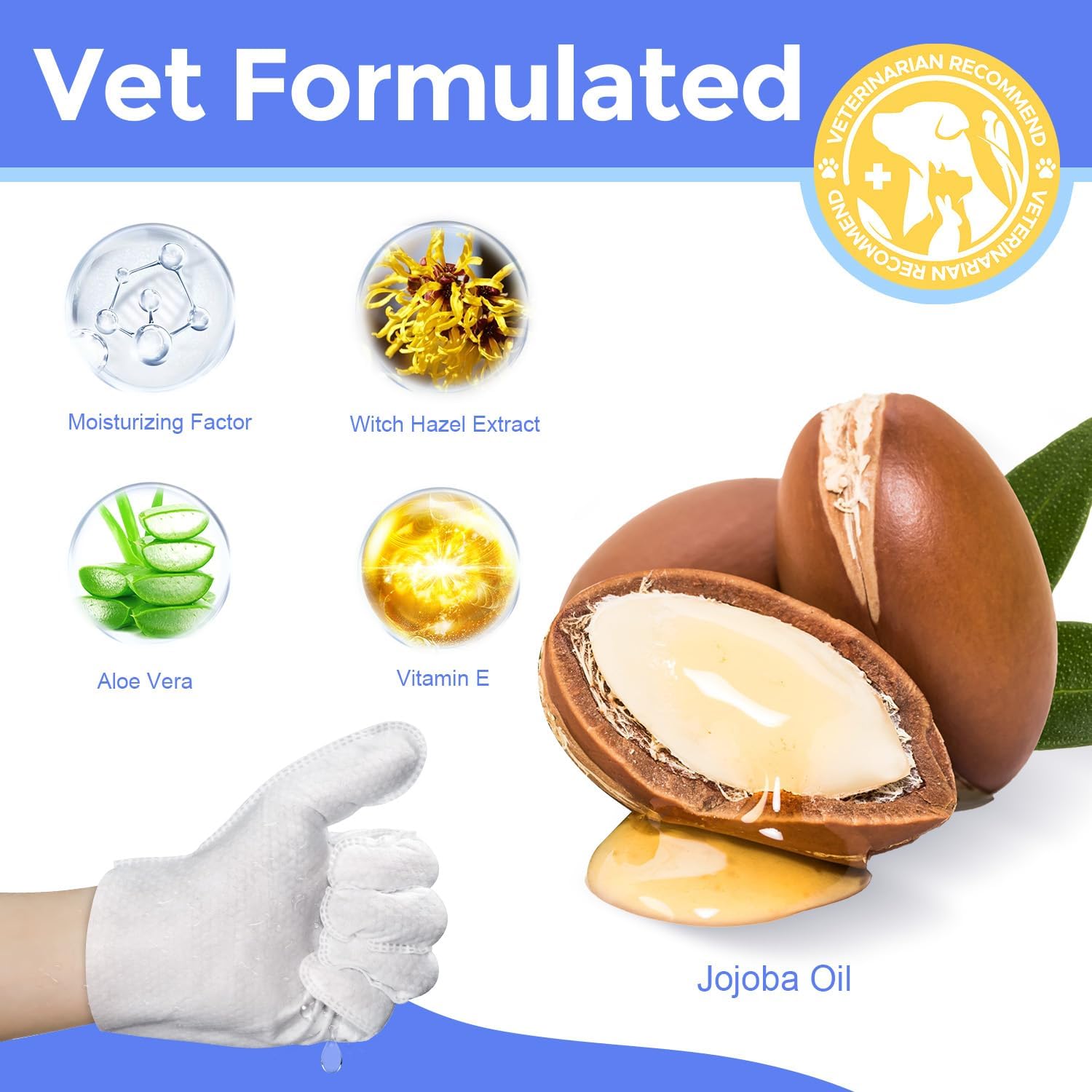 Glove-Style Pet Wipes: PUPMATE Glove Wipes offer superior control and flexibility compared to regular pet wipes. The glove design allows easy cleaning and provides your pet with a comfortable massage, spa-like experience. For thoroughly cleaning sensitive areas, these wipes make grooming sessions more enjoyable for you and your pet.