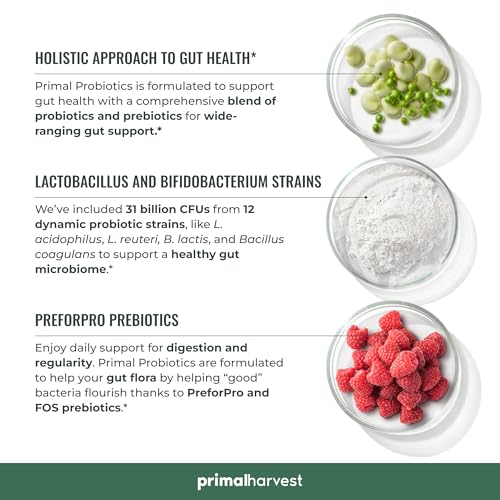 Specification: Primal Harvest PREbiotics and PRObiotics for Women & Men, 30 Oral Capsules for Gut Health, 12 Dynamic Strains