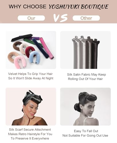CONCIOUSLY CREATED: Our 2 set Velvet Overnight Blowout Rods 1.2″ Curling Wand handcrafted with love, boasts the exquisite touch of soft velvet material, ensuring a safe grip and tight roll that lasts right through the night. With an easy hook-and-lock design, even thick hair remains beautifully intact. The silk hair head wrap for sleeping scarf effortlessly transforms sleep styler into a retro hairstyle for an added touch of allure.