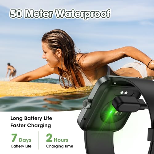 【Sports Tracking and Swim Waterproof】Our smart watch supports more than a few exercise modes, including walking, running, cycling, and swimming. It monitors your daily fitness activities, tracking steps, distance, calories burned, and mileage. With a 50 meters waterproof design, it’s suitable for swimming and provides swim-specific data.