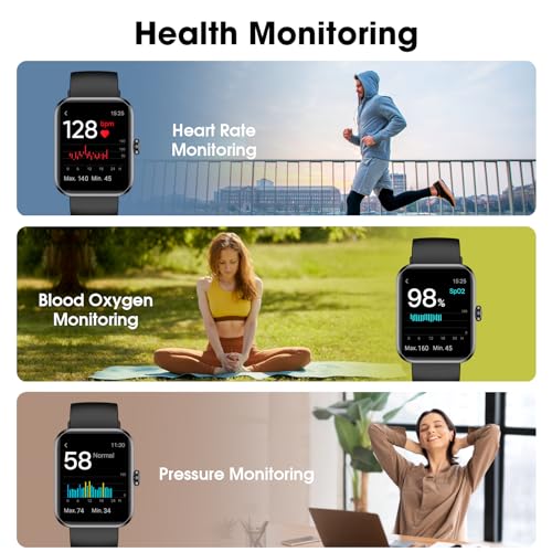 【Fitness Monitoring Wearable】This watch monitors your health status with functions such as heart rate tracking, blood oxygen/blood pressure level measurement, and sleep tracking. It offers a comprehensive understanding of your body and aids in cultivating a healthier way of living.